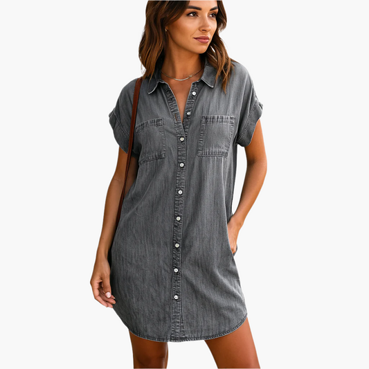 Women's Casual Denim Shirt Dress – Relaxed Fit, Everyday Style