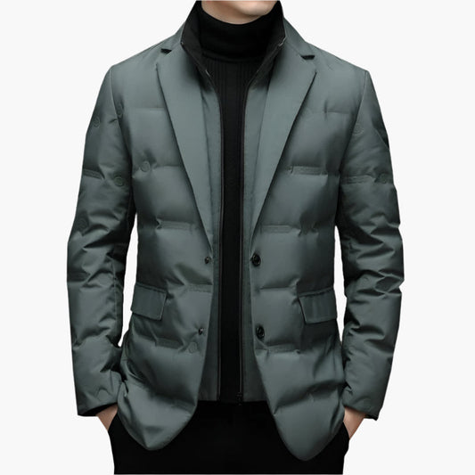 Men's Modern Business Casual Puffer Blazer – Tailored Warm Jacket for Office and Everyday Elegance