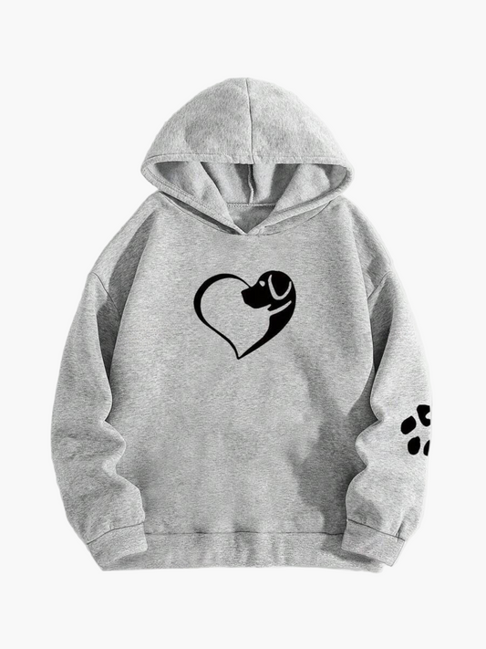 Women's Dog Lover Hoodie with Heart & Paw Print – Animal Rescue Support, Casual Pullover